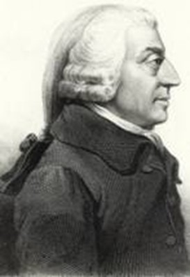 Adam Smith, profesor de lógica, retórica y moral en la universidad de Glasgow, intentó construir, como Hume, una teoría unificada sobre el comportamiento humano en sociedad. Entre otras aportaciones, utilizó el concepto de equilibrio del mecanismo de flujo de metales de Hume. Difiere de éste, en cuanto a su posición estoica frente a la epicúrea de Hume. Hume consideraba que el motor de la producción futura es el deseo de consumo actual. Mientras que los estoicos como Smith, proponían que el crecimiento económico provenía de la capacidad de ahorro.